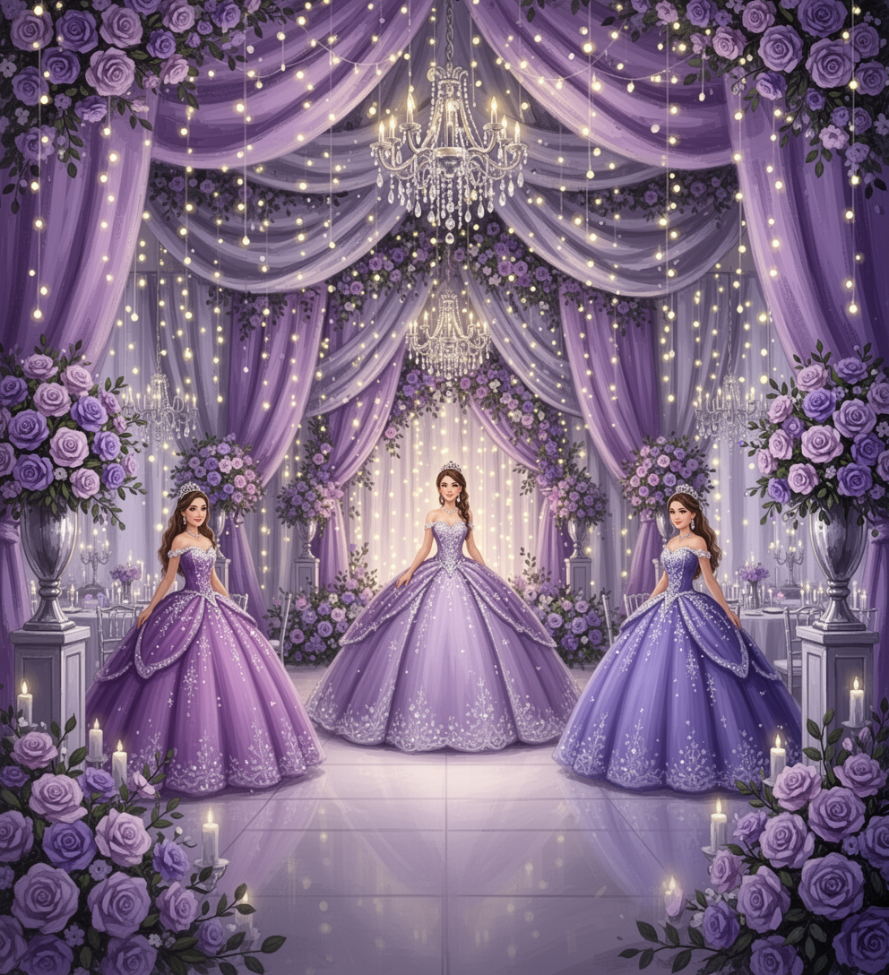 Tonos morados, lilas reservados para la quinceañera.